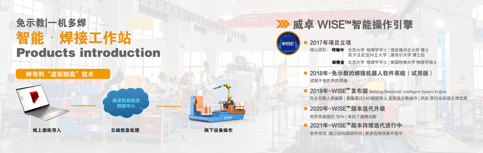 無(wú)錫威卓智能機(jī)器人有限公司成立于2017年,是無(wú)錫市政府引進(jìn)的科技領(lǐng)軍型高新技術(shù)企業(yè),公司研發(fā)團(tuán)隊(duì)80余人,我們堅(jiān)持自主創(chuàng)新,利用自主開發(fā)的虛擬制造技術(shù)對(duì)傳統(tǒng)焊接行業(yè)進(jìn)行升級(jí)改造。 公司主推的工業(yè)風(fēng)機(jī)系列-智能焊接工作站產(chǎn)品,具有免示教、實(shí)時(shí)跟蹤、簡(jiǎn)易工裝、傻瓜式操作等優(yōu)點(diǎn),真正幫助企業(yè)解決了招焊工難,用工成本高,焊接質(zhì)量不穩(wěn)定等問(wèn)題。