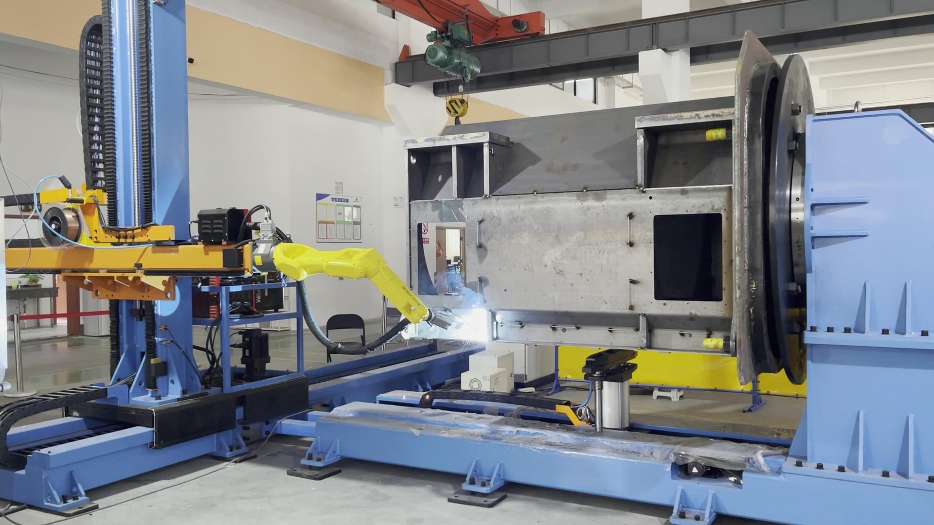 智能焊接在鍋爐/壓力容器行業(yè)的成功應(yīng)用 鍋爐吊桿的耳板,多為坡口多層多道的焊接工藝要求,針對(duì)耳板的焊接需求,威卓設(shè)計(jì)了耳板焊接小產(chǎn)線--整個(gè)